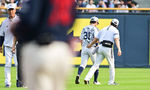 [OSEN=잠실, 박준형 기자] 7일 오후 서울 잠실구장에서 ‘2025 신한 SOL BANK KBO리그’ 두산 베어스와 롯데 자이언츠의 경기가 진행됐다.이날 두산은 최승용을 롯데는 이민석을 선발투수로 내세웠다.2회초 수비 도중 고관절 통증을 호