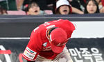 [OSEN=수원, 김성락 기자] 7일 오후 수원 KT위즈파크에서 ‘2025 신한 SOL Bank KBO리그’ KT 위즈와 SSG 랜더스의 경기가 열렸다.이날 홈팀 KT는 선발투수로 고영표, 방문팀 SSG는 앤더슨을 내세웠다. 8회말 2사 1루 KT 오윤석의 3루수 땅볼