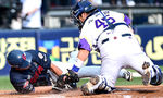 [OSEN=잠실, 최규한 기자] 8일 서울 잠실야구장에서 ‘2025 신한 SOL Bank KBO리그’ 두산 베어스와 롯데 자이언츠의 경기가 열렸다.홈팀 두산은 곽빈, 방문팀 롯데는 알렉 감보아를 선발로 내세웠다.2회초 2사 2루 상황 롯데 정보근의