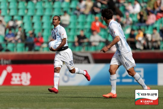 포항은 31일 포항 스틸야드에서 열린 KEB하나은행 K리그1 2018 프로축구 4라운드 울산과 경기에서 정원진과 김승대의 득점을 앞세워 2-1 승리를 거뒀다.