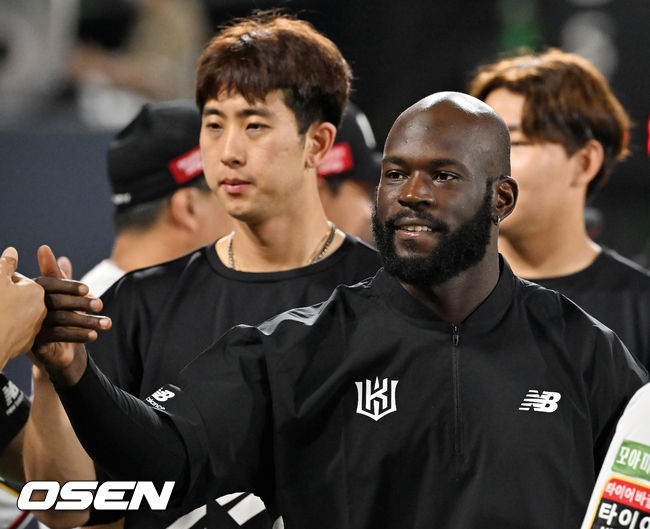 경기를 마치고 KT 알포드가 코치진들과 하이파이브를 하고 있다. 2022.07.09 / rumi@osen.co.kr