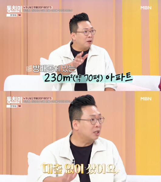 노사연은 “그때 얼마 벌었냐”고 물었다. 박준형은 “방배동에 70평 아파트를 대출 없이 샀다”고 말해 모두를 놀라게 했다.