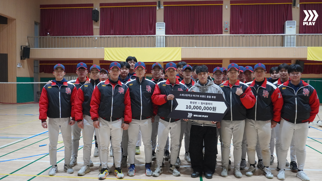 황성빈은 지난 11일 모교인 소래고등학교를 방문해 윌비플레이와 1,000만원 상당의 야구용품을 전달했다.