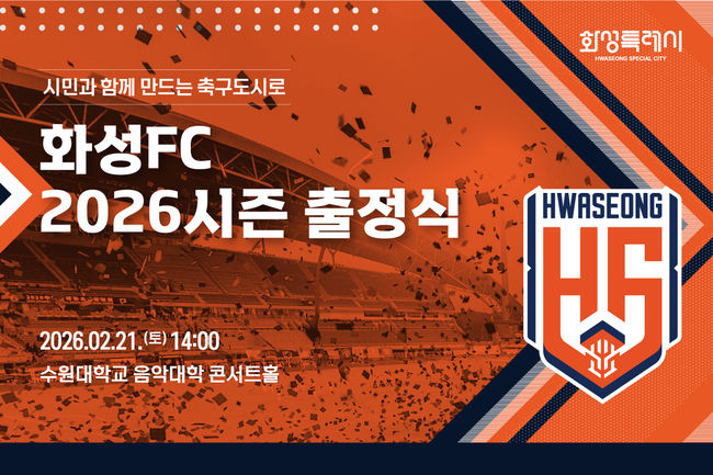 화성FC가 오는 21일 오후 2시, 수원대학교 음악대학 콘서트홀에서 팬들과 함께 새로운 시즌의 각오를 다지는 ‘2026 화성FC 출정식’을 개최한다.
