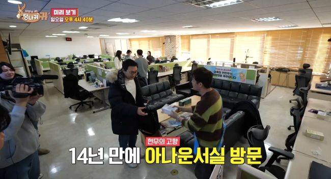 아나운서 출신 방송인 전현무가 퇴사 14년만에 KBS 아나운서실을 찾았다.