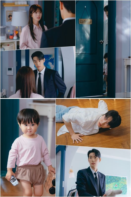 4회 방송 말미, 뜻밖의 인물이 우주네의 초인종을 울려 이목을 집중시켰다. 바로 집주인 자격으로 찾아온 박윤성이었던 것. 공개된 사진 속 서로를 마주하고 당황과 놀람의 눈빛을 주고받는 우현진과 박윤성의 얼굴이 눈길을 끈다. 방으로 숨어든 선태형과 선우주(박유호 분)의 모습도 흥미롭다. 살짝 열린 문틈 사이로 우현진과 박윤성을 염탐하는 두 사람의 은밀한 시선이 호기심을 자극한다. 이어 문을 박차고 뛰쳐나온 선우주와, 이에 깜짝 놀란 토끼 눈이 된 박윤성, 그의 앞에 제대로 엎어져 있는 선태형의 모습이 웃음을 유발한다.