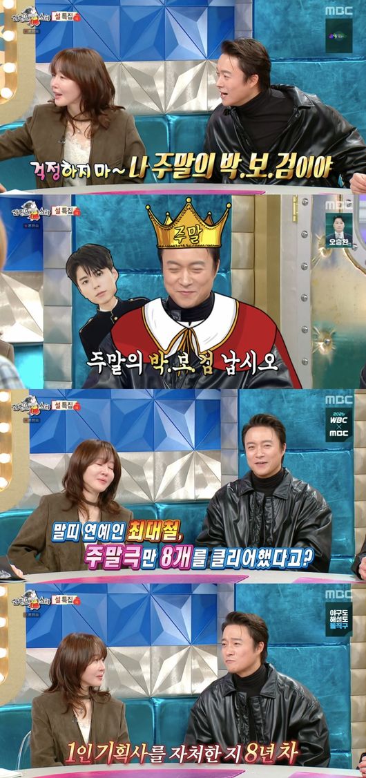 무엇보다 최대철은 주말극만 무려 8개를 클리어 했다고 알려져 놀라움을 안겼다. 비결을 묻자 그는 “이유는 잘 모르겠는데 주말 맡기기에 편해보이는 것 같다”라고 겸손하게 답했다.