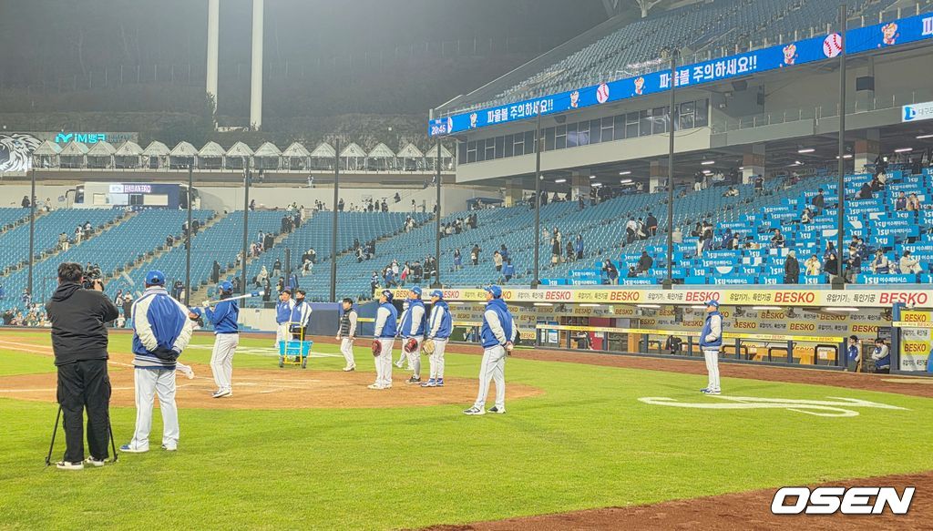 지난 23일 대구삼성라이온즈파크에서 열린 KIA 타이거즈와의 시범경기에서 7-1 승리를 거둔 뒤, 삼성 선수들은 야간 경기 대비 수비 훈련에 돌입했다. 아직 꺼지지 않은 조명탑 아래, 선수들의 움직임이 다시 분주해졌다.