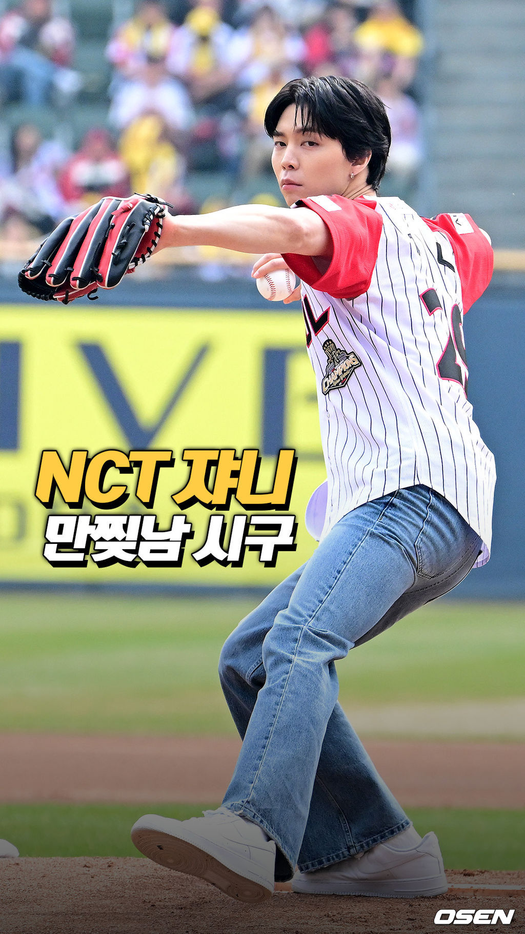 이날 NCT 쟈니가 시구자로 나섰다. DJ, 예능, MC 등 멀티 엔터테이너로 존재감을 뽐내고 있는 쟈니는 최근 2026 WBC 대한민국 경기 시구자로 나서기도 했다.