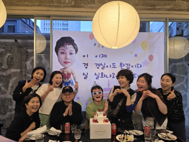 공개된 사진에는 이경실의 환갑을 기념해 마련된 파티 현장이 담겼다. 이홍렬, 이성미, 정선희, 김지선, 김효진, 전영미 등 개그계 동료들이 총출동해 자리를 빛냈다.