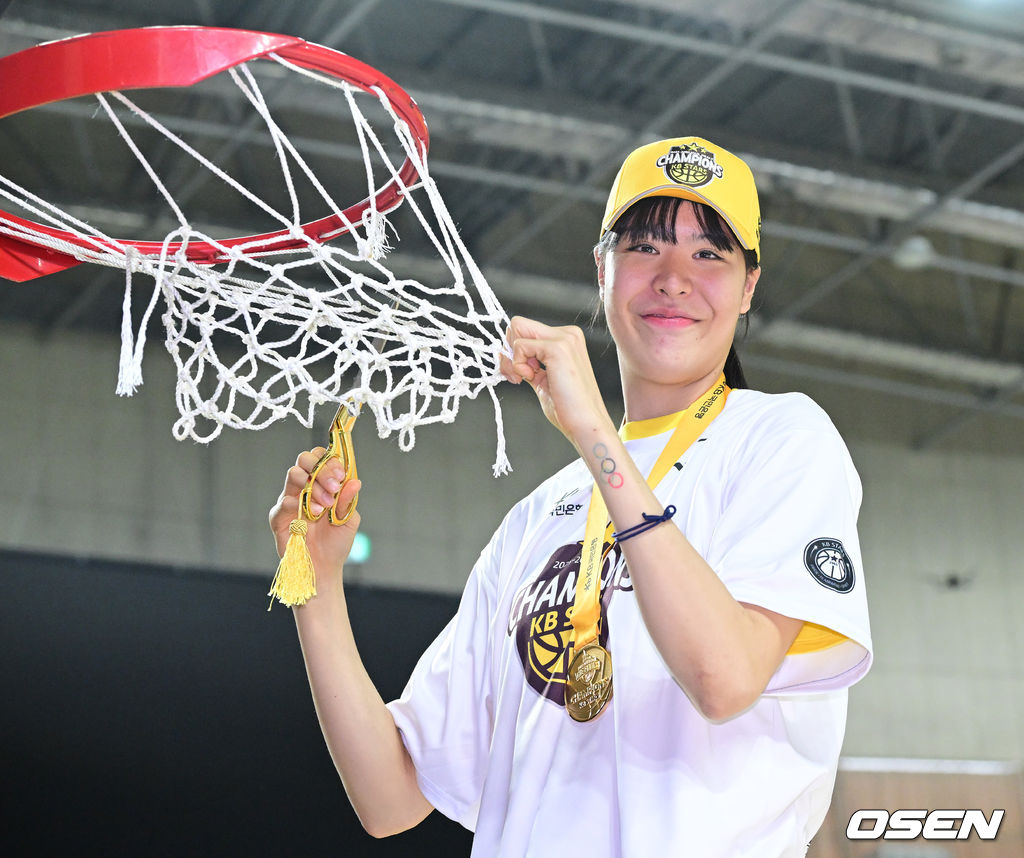 KB 박지수가 림 그물을 자르는 세리머니를 펼치고 있다. 2026.04.26 / dreamer@osen.co.kr