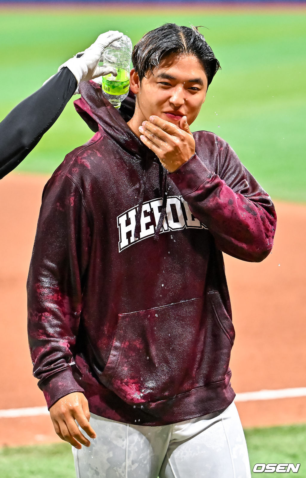 경기를 마치고 박준현이 축하 물세례를 받고 있다. 2026.04.26 / rumi@osen.co.kr