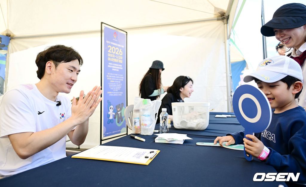 올림픽공원에서 열린 스포츠주간 기념 ‘땀송송 운동해봄제’ 나답게 무브 홍보부스에서 이제혁 선수가 시민들에게 패럴림픽을 주제로 한 OX 퀴즈를 내고 있다. 2026.04.27 /cej@osen.co.kr