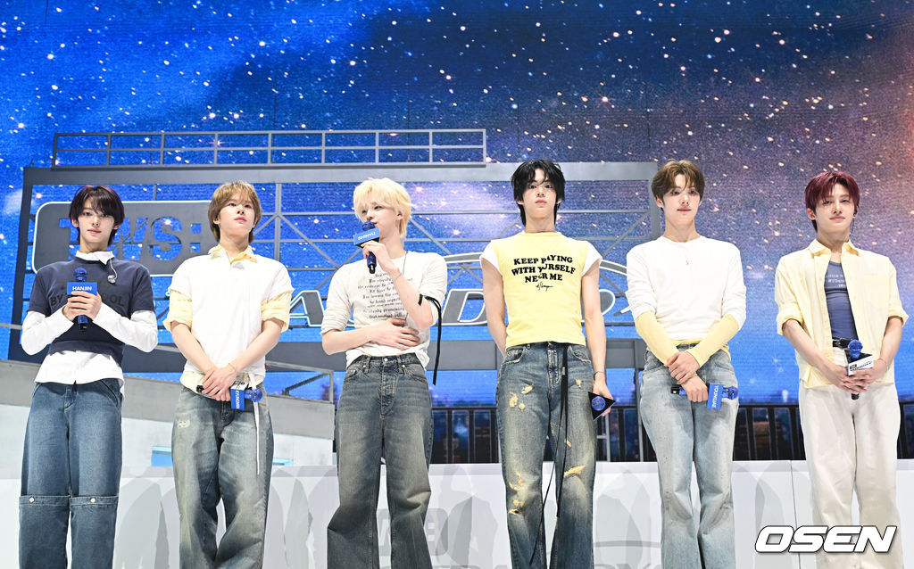 TWS(투어스)의 미니 5집 ‘NO TRAGEDY’ 발매 기념 미디어 쇼케이스가 27일 서울 광진구 예스24 라이브홀에서 열렸다.
