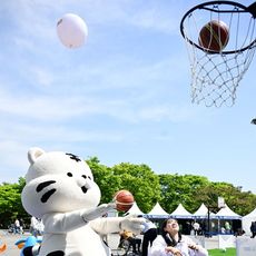 2026.04.27 14: 57백호돌이와 휠체어 농구 체험하는 김윤지