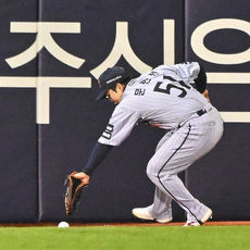 2026.04.21 19: 47문성주 장타 허용하는 문현빈의 실책성 수비