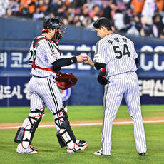 시즌 10세이브 달성한 유영찬, 박동원 선배 덕분이에요