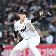 힘차게 공 뿌리는 KT 스기모토 코우키