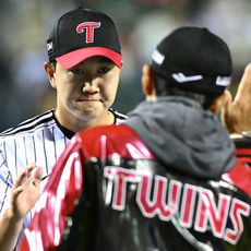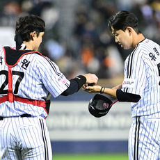 LG 염경엽 감독과 인사 나누는 유영찬, '깔끔하게 경기 마무리 짓고'
