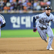 2026.04.23 21: 25노시환, '오스틴 태그 피하며 1루로 전력질주'