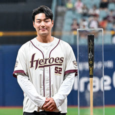 2026.04.26 14: 21박병호 코치, '순금 20돈 로고 활용한 배트 받침대 받아'