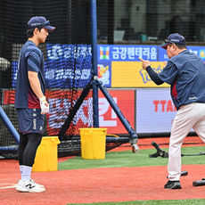 2026.04.28 16: 27김태형 감독, 이서준에게 타격 지도