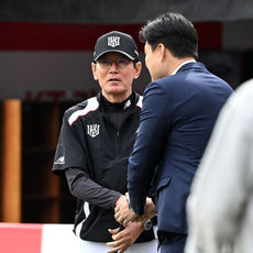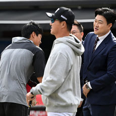 2026.04.28 16: 32오재일과 반갑게 인사 나누는 이강철 감독