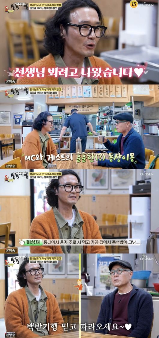 7일 방송된 TV조선 ‘식객 허영만의 백반기행’(이하 ‘백반기행’)에서는 꽃중년 배우 이성재가 제주 밥상을 찾아 나선 모습이 그려졌다.