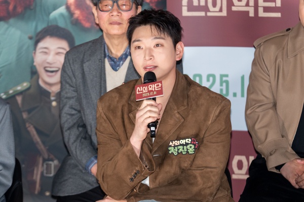 이날 제작보고회의 하이라이트는 막내 기타리스트 ‘리만수’ 역을 맡은 한정완의 라이브 무대였다. 극 중 결정적인 역할을 하는 곡인 임영웅의 ‘사랑은 늘 도망가’를 북한 사투리 버전으로 열창해 취재진의 뜨거운 플래시 세례를 받았다. 김형협 감독은 “단순한 커버 곡이 아니라, 주인공 교순의 심경 변화를 이끌어내는 영화적 장치”라고 설명을 덧붙여 궁금증을 자아냈다.