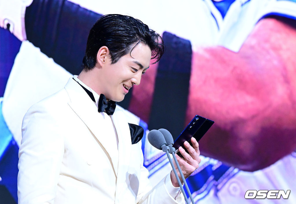 삼성 디아즈가 1루수 부문 골든글러브를 수상했다. 구자욱이 대리수상하며 소감을 말하고 있다. 2025.12.09 /jpnews@osen.co.kr