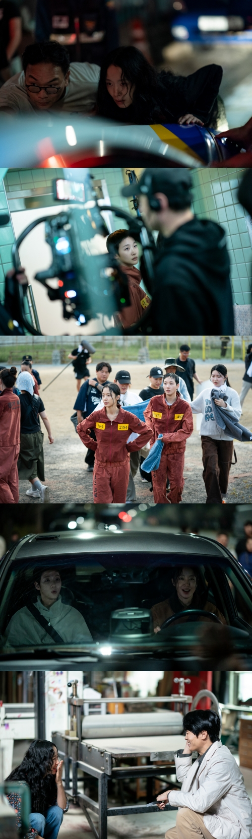 교도소 안에서 비를 맞은 모습부터 차 안에서 장난스런 표정을 짓고 있는 전도연과 김고은의 스틸은 극 중 ‘윤수’와 ‘모은’의 비밀스런 거래를 떠올리게 하는 동시에 두 사람의 케미스트리를 엿보게 해 시선을 사로잡는다. 환하게 웃고 있는 전도연과 진선규, 긴장감 넘치는 장면 촬영 중 웃고 있는 전도연과 최영준, 취조실에서 서로를 보며 미소를 짓는 김고은과 박해수의 모습 등은 극 중 진실과 거짓을 두고 끊임없이 부딪쳤던 인물들의 관계와는 달리 화기애애했던 촬영 현장의 분위기를 고스란히 전한다.