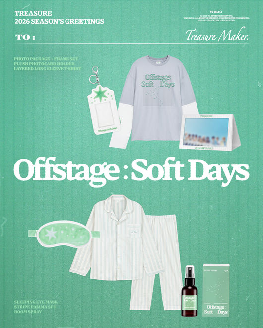 YG플러스(YG PLUS)는 트레저(TREASURE)의 2026년 시즌그리팅 MD ’Offstage : Soft Days’ 예약 판매가 11일 오전 11시부터 시작된다고 밝혔다.