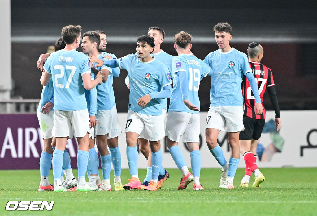 후반 멜버른 시티 카나모리의 동점골때 기뻐하는 멜버른 시티 선수들. 2025.12.10 / soul1014@osen.co.kr