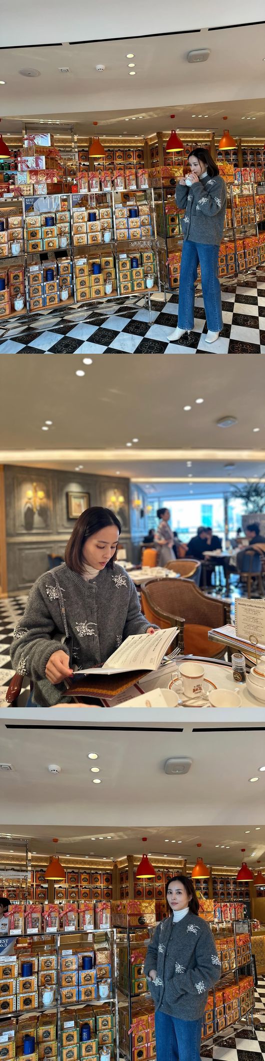 공개된 사진은 한혜진의 다양한 일상 모습. 한혜진은 흰색 목티에 편안한 회색 니트 가디건을 걸치고 청바지를 매치한 캐주얼한 스타일을 선보였다. 꾸밈없는 일상복 차림에도 불구하고, 작은 얼굴과 긴 다리 덕분에 마치 키 170cm 이상의 모델처럼 보이는 완벽한 핏을 연출했다.