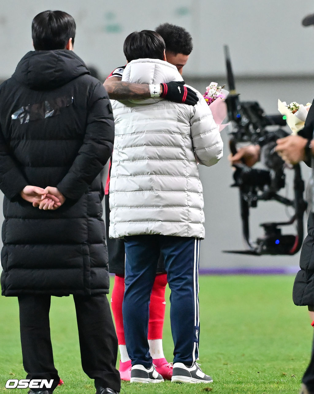 경기종료 후 FC서울 린가드 고별행사에서 린가드가 김기동 감독과 포옹을 하고 있다. 2025.12.10 / soul1014@osen.co.kr
