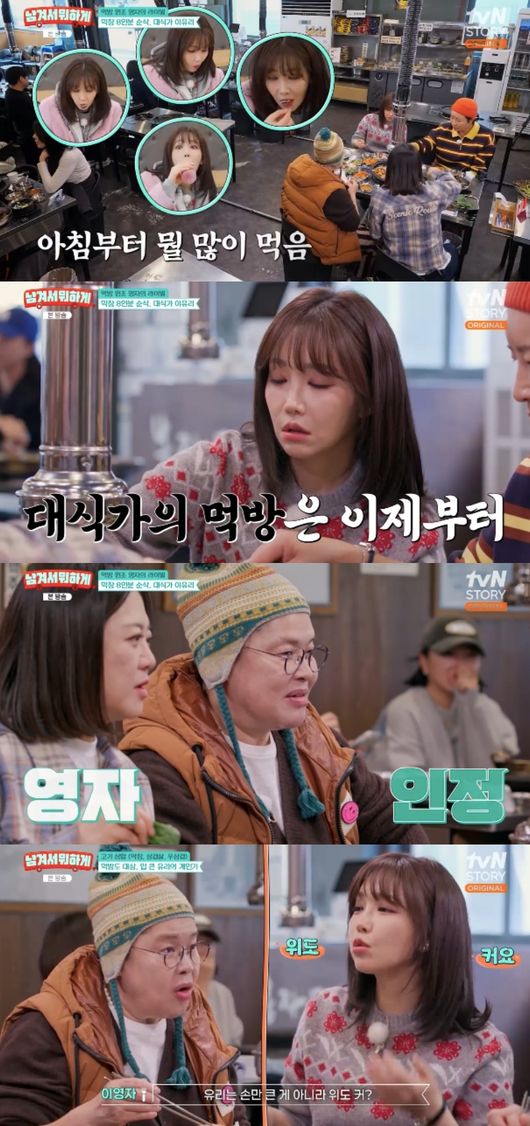 이어 이유리는 우삼겹 쌈으로 먹어도 안 먹은 척 개인기를 선보이기도 했다. 이영자는 “유리도 박세리처럼 손이 크다”라며 과거 ‘편스토랑’에서의 일화를 떠올렸다.