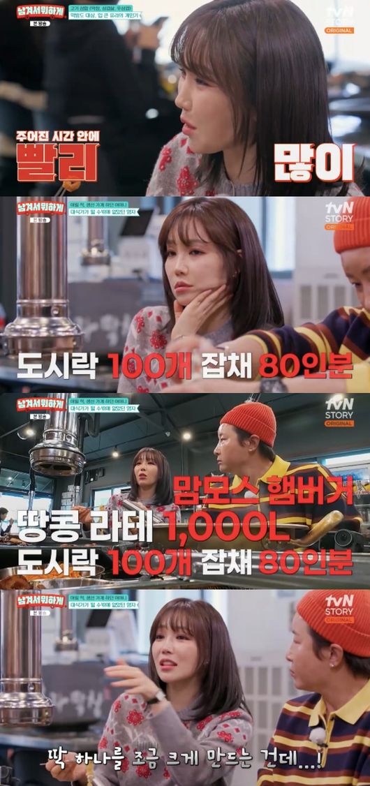 당시 이유리는 ‘편스토랑’에서 멘보샤 150개, 도시락 100개, 잡채 80인분을 만들었다고. 심지어 땅콩 카레 1000리터, 맘모스 빵으로 햄버거까지 했다고 밝혀 놀라움을 안겼다.