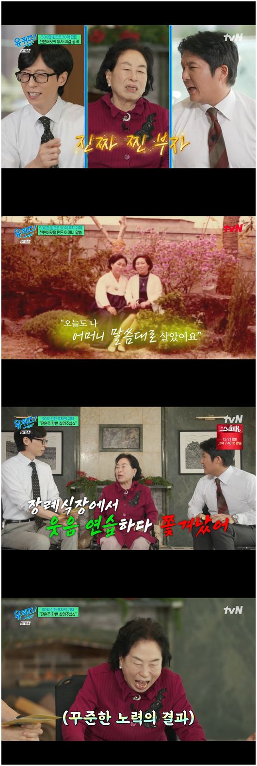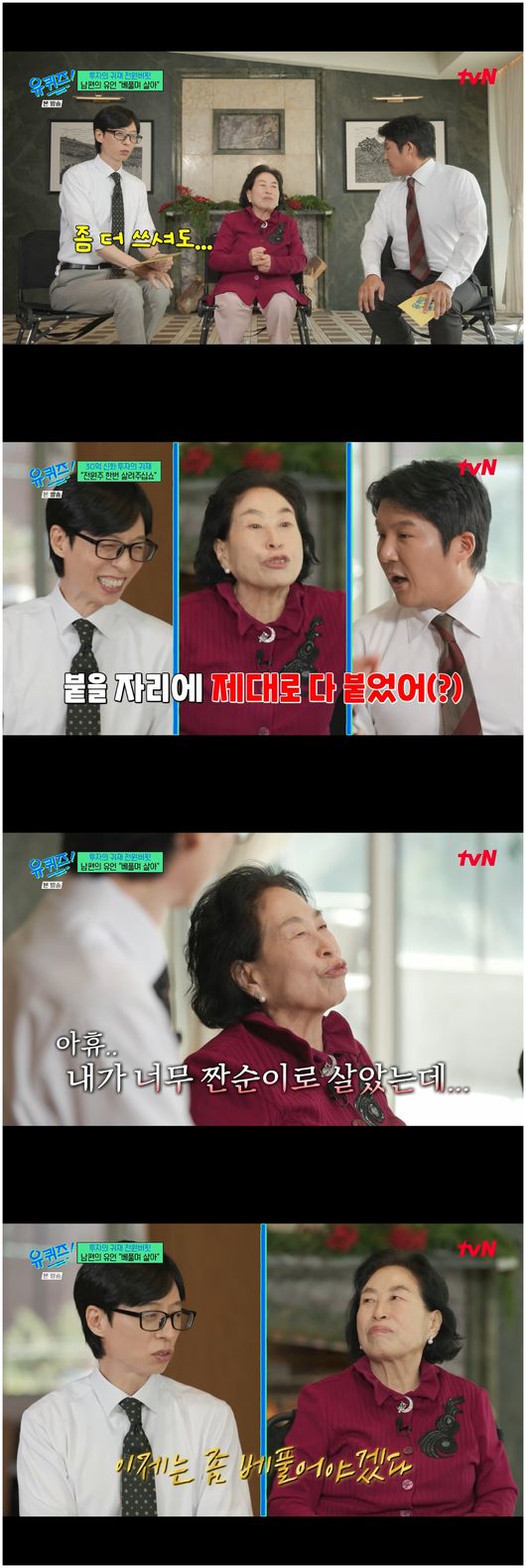 10일 방영된 tvN ‘유퀴즈 온 더 블럭’(이하 ‘유퀴즈’)에서는 배우 전원주, 개그맨 김수용이 등장했다.