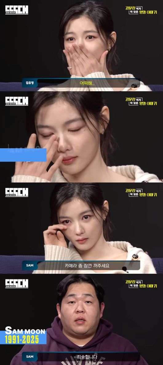 결국 김유정은 "제가 열심히 한 작품들을 나꾸 놀리듯이 하시니까"라며 눈물을 훔쳤다. 이에 당황한 문상훈은 "제가 큰 실수를 저질렀다. 여러분, 국민 여러분 잘못했다. 카메라 좀 꺼달라. 여기 휴지 좀 가져다 달라"라고 소리쳐 실소를 자아냈다.