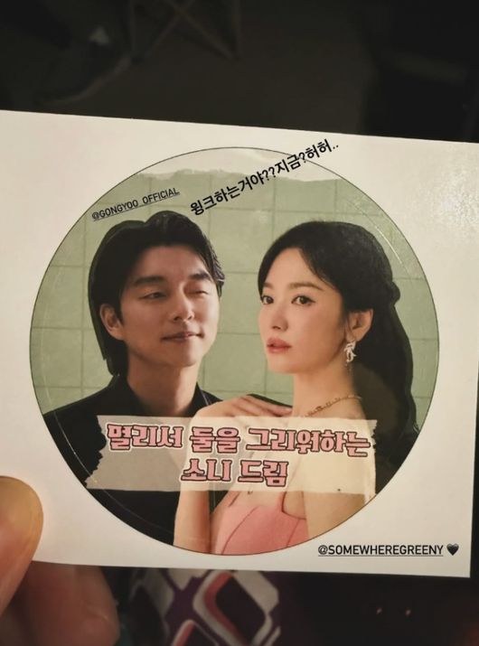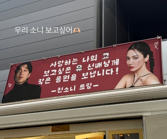 전소니는 커피차에 “사랑하는 나의 교. 보고 싶은 유 선배님께 작은 응원을 보냅니다!”라는 멘트를 남기며 송혜교와 공유에게 마음을 전했다.