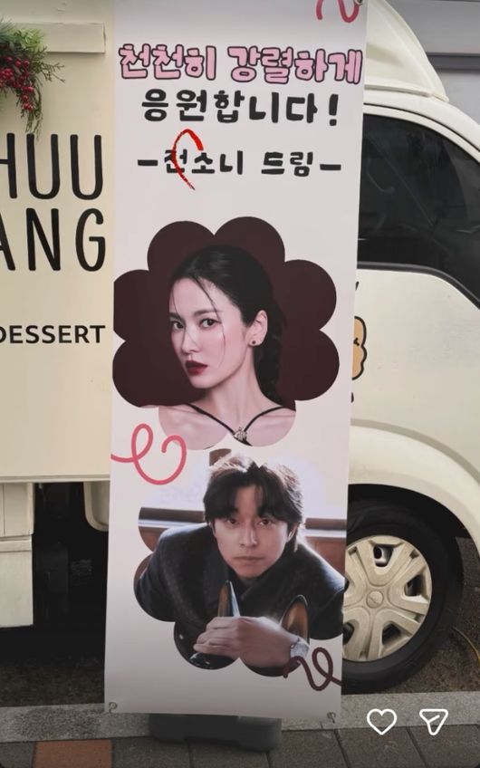 송혜교와 공유는 노희경 작가의 신작인 넷플릭스 시리즈 ‘천천히 강렬하게’에서 호흡을 맞춘다. 앞서 배우 수지도 두 사람에게 커피차를 선물하면서 응원을 보내기도 했다. /seon@osen.co.kr