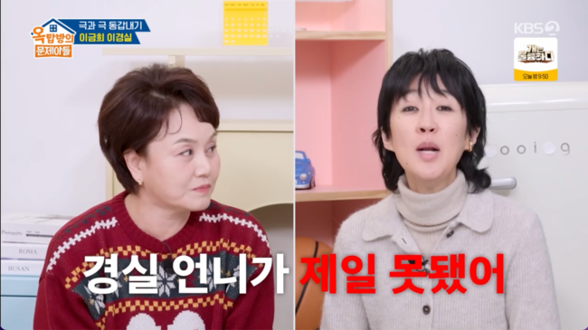 11일 전파를 탄 KBS2 예능 '옥탑방의 문제아들’(이하 '옥문아’)에서는 동갑내기 방송인 이금희와 이경실이 출연했다.