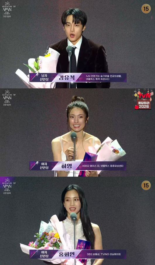 배우 강유석과 이채민, 하영, 홍화연이 '2025 에이판 스타 어워즈'의 신인상 주인공이 됐다.