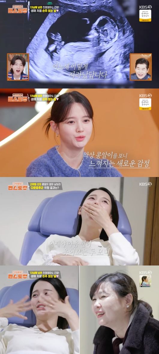 무려 13남매를 낳은 남보라의 모친에게도 많은 자식과 달리 손주는 처음이었다. 이에 초음파 검사 내내 뭉클해 하는 모친에 대해, 남보라는 "저희 엄마도 맨 처음 산부인과를 같이 가자고 했을 땐 흥미가 없어 보였다. 그런데 막상 가보니까 다르더라. 엄청 좋아하셨다"라며 웃었다.