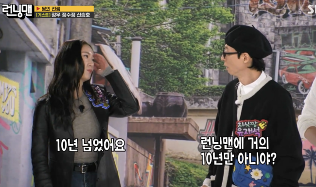 이날 가수 겸 배우 정수정이 출연, F(x) 크리스탈에서 배우 정수정으로 활약 중이다.‘런닝맨’ 출연이 거의 10년 만이라는 정수정은 “2014년 출연했다”고 하자 모두 “12년 전과 변함없는 비주얼이다 , 얼굴 최고다”며 감탄했다.