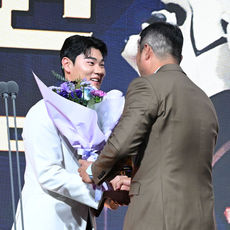 2025.12.09 18: 35염경엽 감독에게 꽃다발 받는 신민재