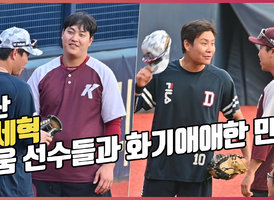 두산 박세혁, 키움 선수들과 화기애애한 만남[O! SPORTS]