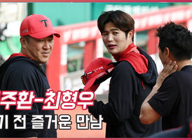 최주환-최형우,'경기 전 즐거운 만남'[O! SPORTS]