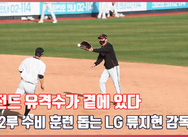 ‘레전드 유격수가 곁에 있다’ 2루 수비 훈련 돕는 LG 류지현 감독[O! SPORTS]