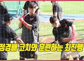 정경배 코치와 훈련하는 최진행,'변화구에 대응하라'[O! SPORTS]